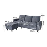 RETURNs Levede 3 Seater Sofa L-Shaped Convertible Modular Couch Lounge Ottoman 195cm