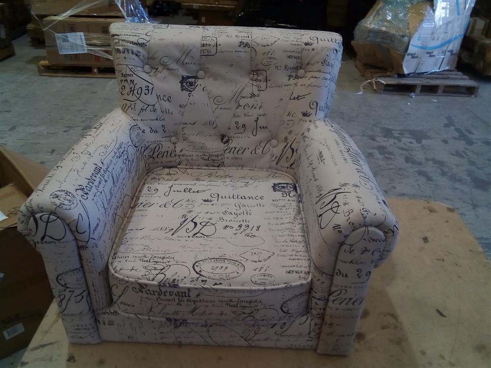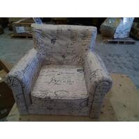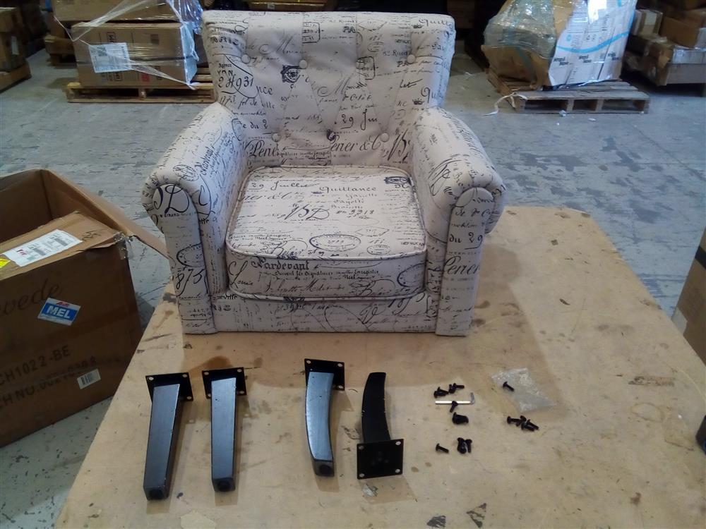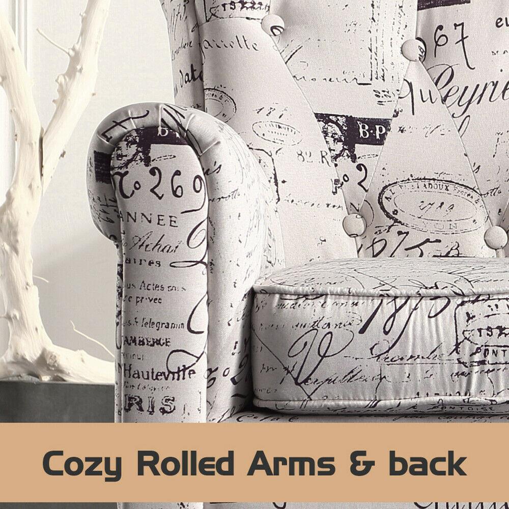 The Upholstered chair is the perfect chair for any room that exhibits an affluent or upscale decor. Aside from the sleek black legs, this chair is upholstered entirely with charming letter in vintage tones. It offers comfortable cushioned seating and the armrests and top portion of the back curve, adding to the exquisite and ed styling of this chair. It is also great as an accent chair to match with your existing furniture in your living room, bedroom, office or den.