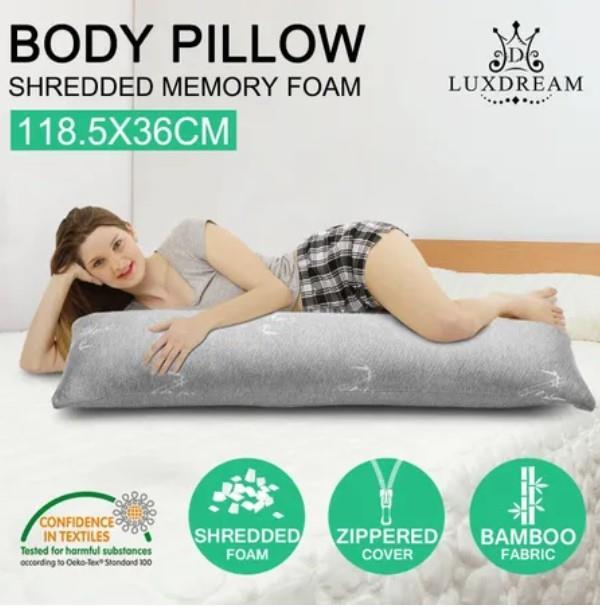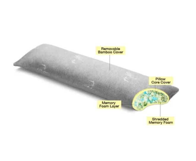 You should have this body pillow if you like sleeping on your side most times. This pillow is filled with shredded memory foam which can not only conform to the shape of your body but also relieve pressure on your legs and hips. It has a long shape, which allows you to share with your loved one as a head pillow. This long pillow is designed to protect against bacteria, fungi and a dust mite invasion, ideal for people who struggle with allergy and asthma. The exterior of this body pillow is a breathable bamboo knitted cover for extra comfort. Moreover, the bamboo cover is removable for hand or machine washing for better health.