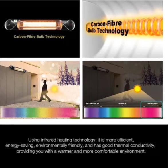 - MAXKON's carbon fibre bulb technology: It produces invisible infrared thermal light rays, warming you directly.