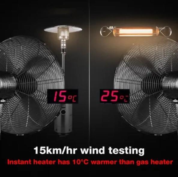 - The high-performance carbon-fibre technology heating tube of MAXKON Infrared Heater produces a large amount of heat quickly at a power of 2000W, and could minimize oxygen consumption and moisture loss in the air.