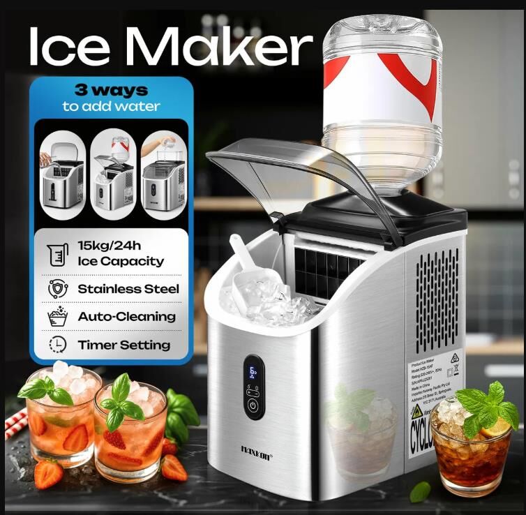 RETURNs Maxkon Countertop Ice Maker Machine Home Bar Square Cube Self Clean 15KG/Day