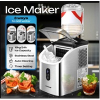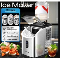 Enjoy fresh, crystal-clear square ice anytime with this Portable Ice Maker Machine. Compact yet powerful, this ice-making machine features a 1.5 L external water tank and produces up to 15 kg of ice per day, with the first batch of 16 cubes ready in just 13–15 minutes. And its 6.5 L water capacity and three convenient refill options minimise interruptions, while the adjustable ice-making time lets you choose the perfect cube thickness, making it ideal for whisky, cocktails, sodas, coffee, tea, or food preservation. For added convenience, the 24-hour timer function allows you to schedule ice production overnight so you can wake up to a fresh supply in the morning, saving time and trips to the store. Maintenance is effortless with the one-touch self-cleaning mode, keeping your ice hygienic and fresh for every use. Further, the intuitive LCD panel displays clear alerts for water shortage, ice production, and a full ice basket, ensuring smooth operation. Perfect for family gatherings, parties, or daily kitchen needs, this clear ice cube maker ensures you'll always have ice on hand for every occasion.