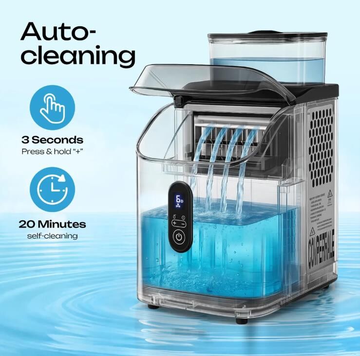 - Smart LCD Alerts: User-friendly display with clear indicators that flash when the basket is full (remove ice to prevent overflow) and when it's time to add water.
