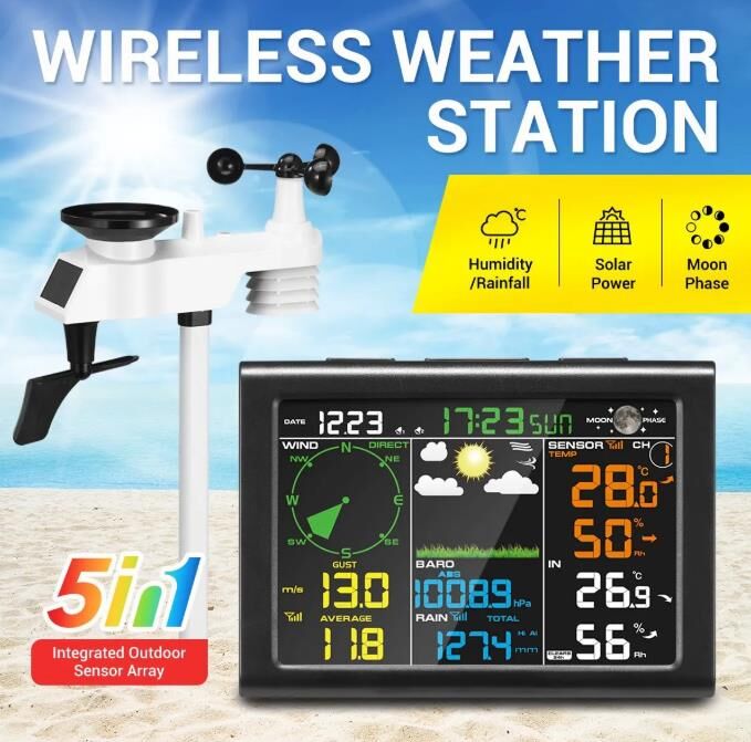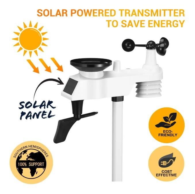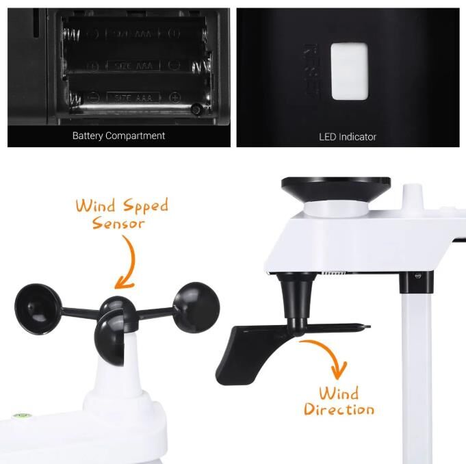 This wireless weather station is constructed from high-grade materials, which is built to last whether in your house, garden or backyard. This home weather station can report full weather information, including barometric pressure, wind speed, wind direction, the volume of rain as well as indoor and outdoor temperature and humidity. This system can be operated by battery or solar energy. Mount it on the wall or place it on a flat area. For data accuracy, remember to keep the unit away from any source of heat and obstructions, such as buildings, sidewalks and macadam.