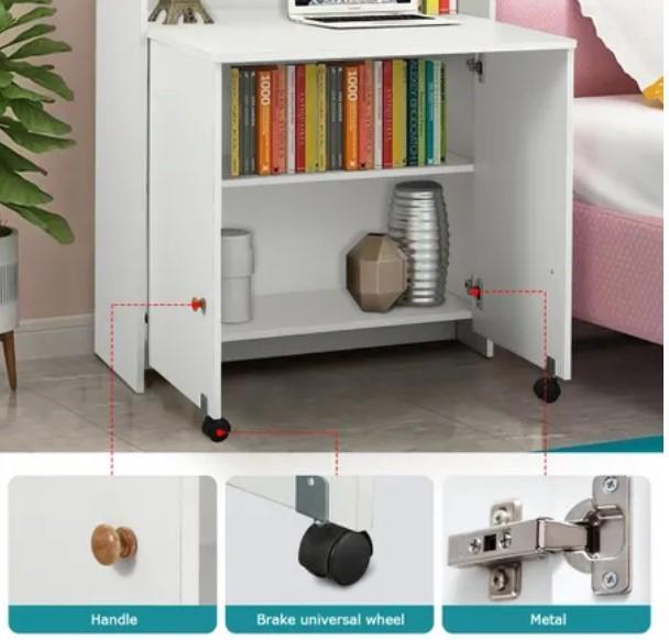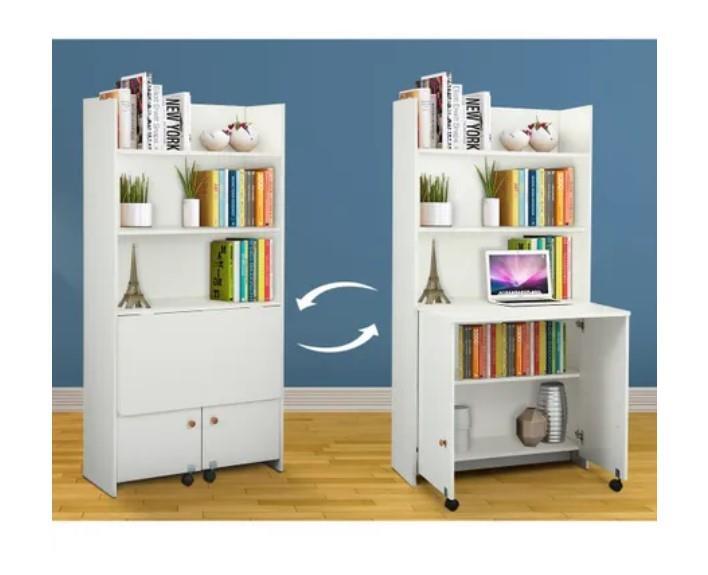 Opening the two cupboard doors can become a desk, and there are two bookshelves under the desk