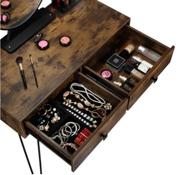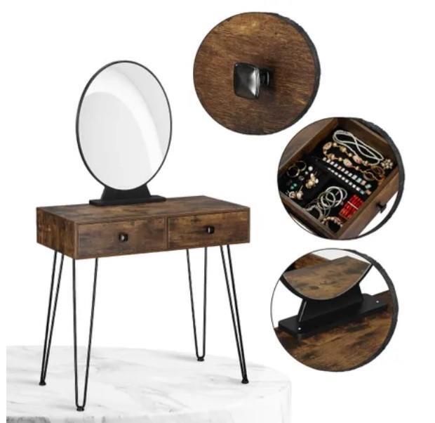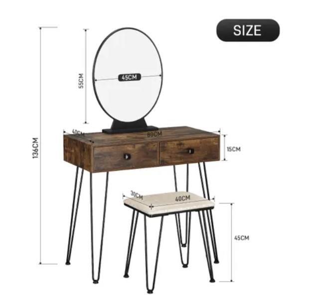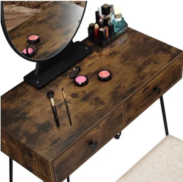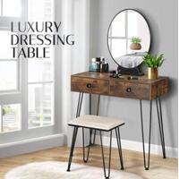 RETURNs New Dressing Table Stool Set Makeup Mirror Jewellery Vanity Table 2 Drawers Oak