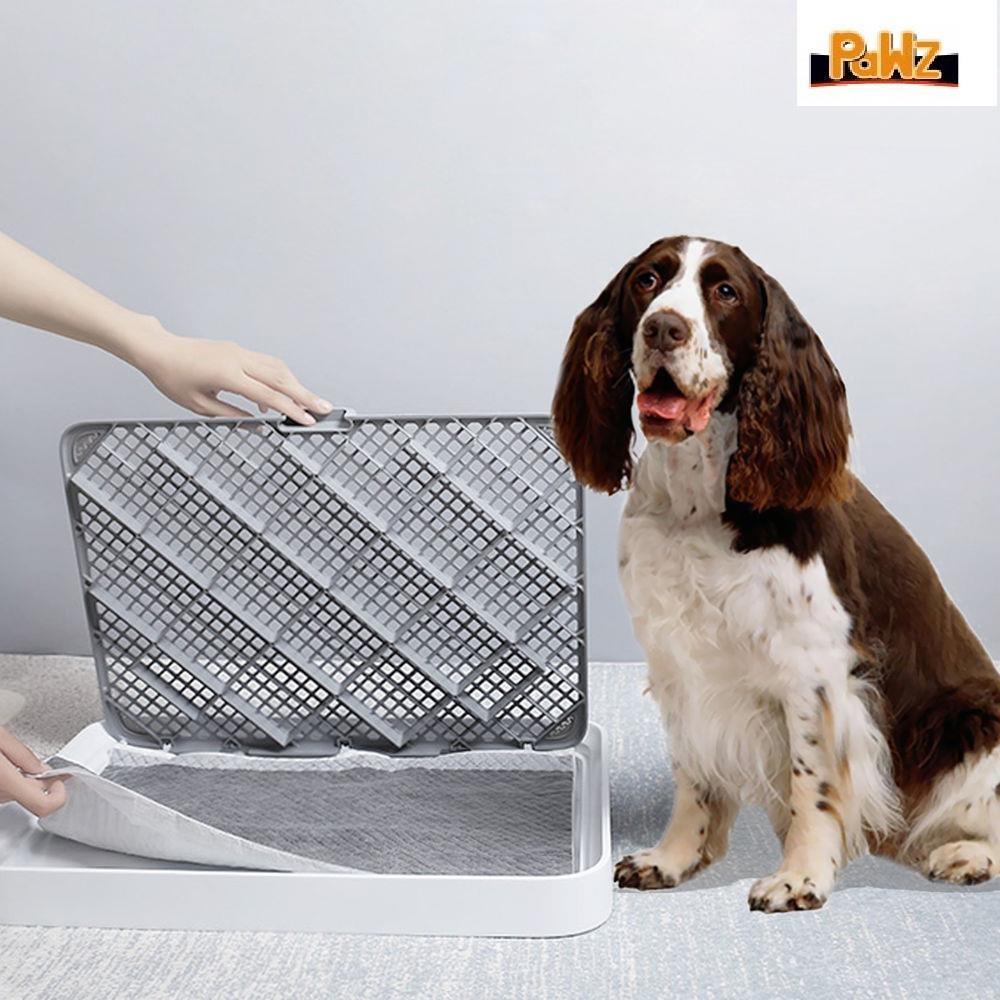 How to use a dog pad: Unfold and place the pad, plastic side down, in a confined area, away from your dog's bed and food. Place your dog on the pad several times so he can smell the pad and get used to it. While your dog is eliminating on the pad, use a phrase like "go potty" so that eventually you can use the command and your dog will understand what it means. Immediately after the dog eliminates on the pad, reward him with praise and a treat. If your dog has an accident, bring him back to the pad immediately. Continue bringing your dog back to the pad to reinforce that this is the place to go potty. Dispose of soiled pads and replace as needed.To complete house training, gradually move the pad closer to the door and finally outside.