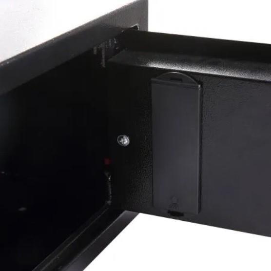 The safe is made of strong solid, pry-resistant steel with two enhanced live-door bolts and pry-resistant concealed hinges. Perfect for keeping your basic household things secure, like cash, documents, jewelry, wallets, passports, keys, etc.