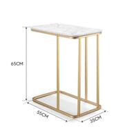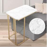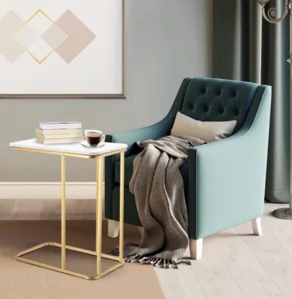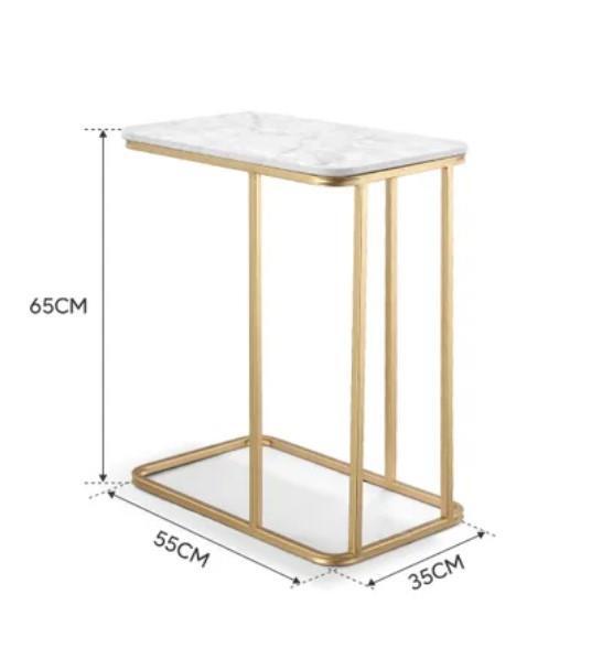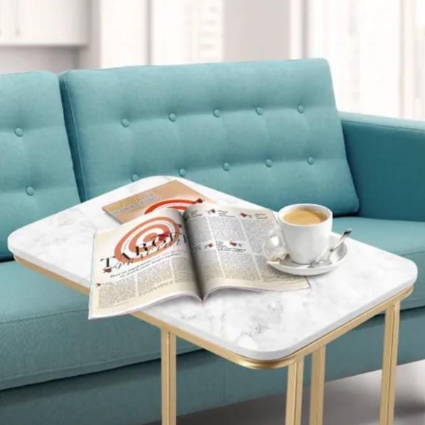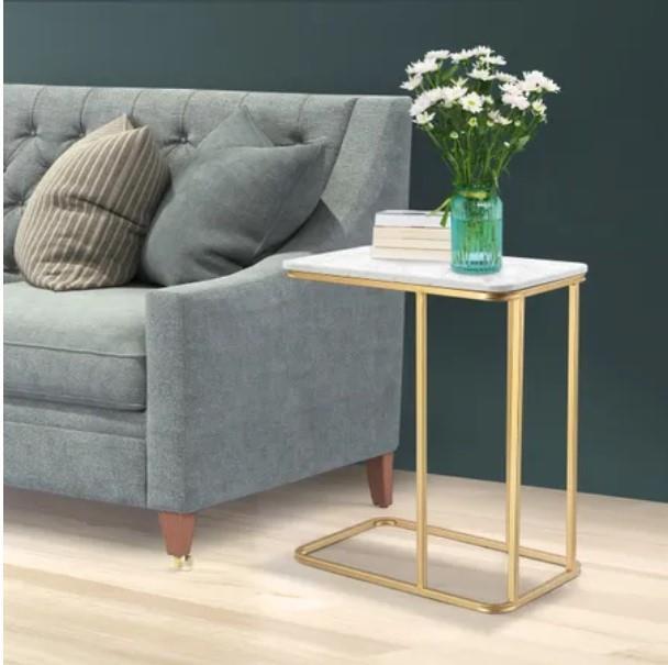 Having a table like this C-shaped side table will surely upgrade your happiness at home. Enjoy yourself in the soft couch and let this compact sofa side table serve you what makes you happier. No matter you are in bed, or on the sofa, the unique C shape of the table will allow it to be as close to you as possible. You can have snacks, coffee, tea, or magazine, phone prepared on the table and take them any time you want. The side table features gold metal support and base, as well as a faux marble top, which make it durable and solid for years of use. Besides, it can also work as an end table, corner table in the living room, a nightstand in the bedroom, even a plant stand at the balcony. The compact design is space-saving. What are you waiting for? Order it home right now!