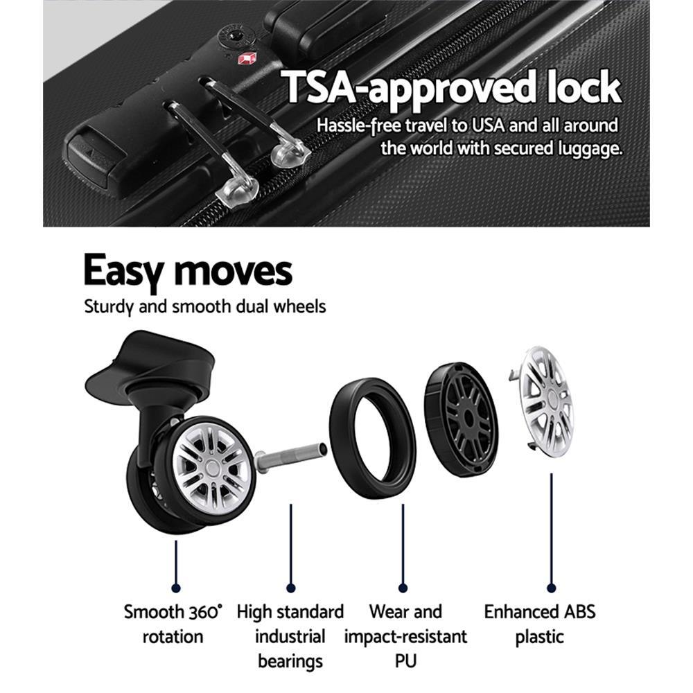 RETURNs Wanderlite 2pc Luggage Trolley Set Suitcase Travel TSA Hard Case Carry On Black
