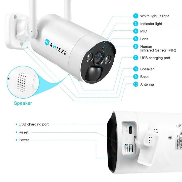 - Built-in MIC and speaker allow for audio-to-video synchronisation and two-way audio