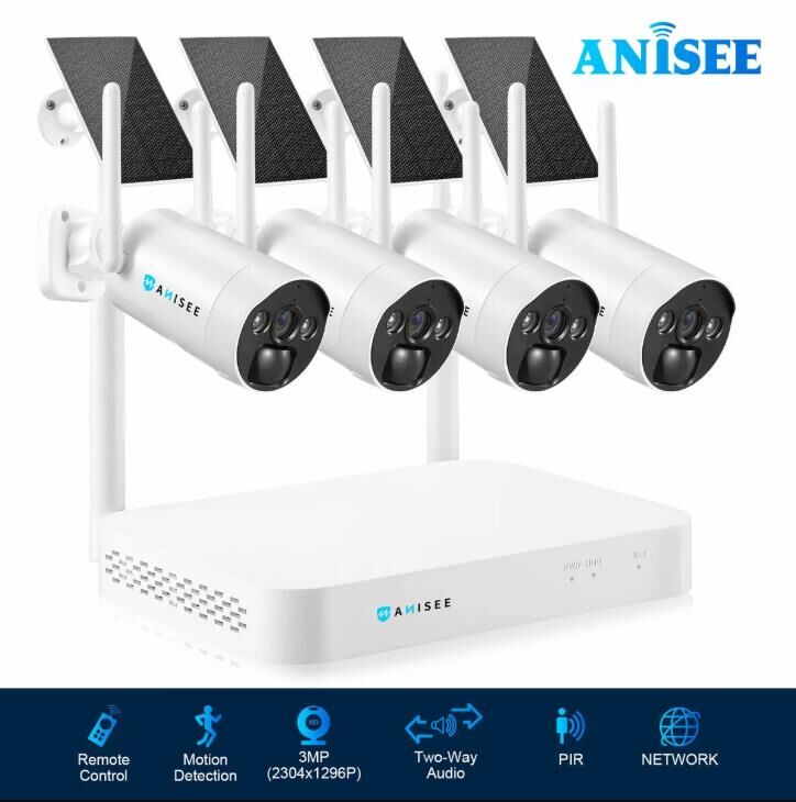 You will feel protected around the clock with this WiFi security camera installed in your home. Our spy camera is easy to use and comes with everything you need to get started. Its wireless NVR includes a built-in wireless network card for freeing the camera from the network cable, a built-in speaker for smart voice broadcasting and alarm, and four 1.6W solar panels for providing non-stop power to the batteries. The camera features a maximum pixel of 3MP for high resolution, two built-in 21700 rechargeable lithium batteries for ultra-long standby time, and smart PIR detection for fast recording. Besides, the built-in MIC and speaker enable two-way audio and audio-to-video synchronization. Plus, it is IP65 waterproof for better performance on rainy or windy days.