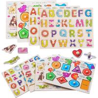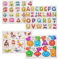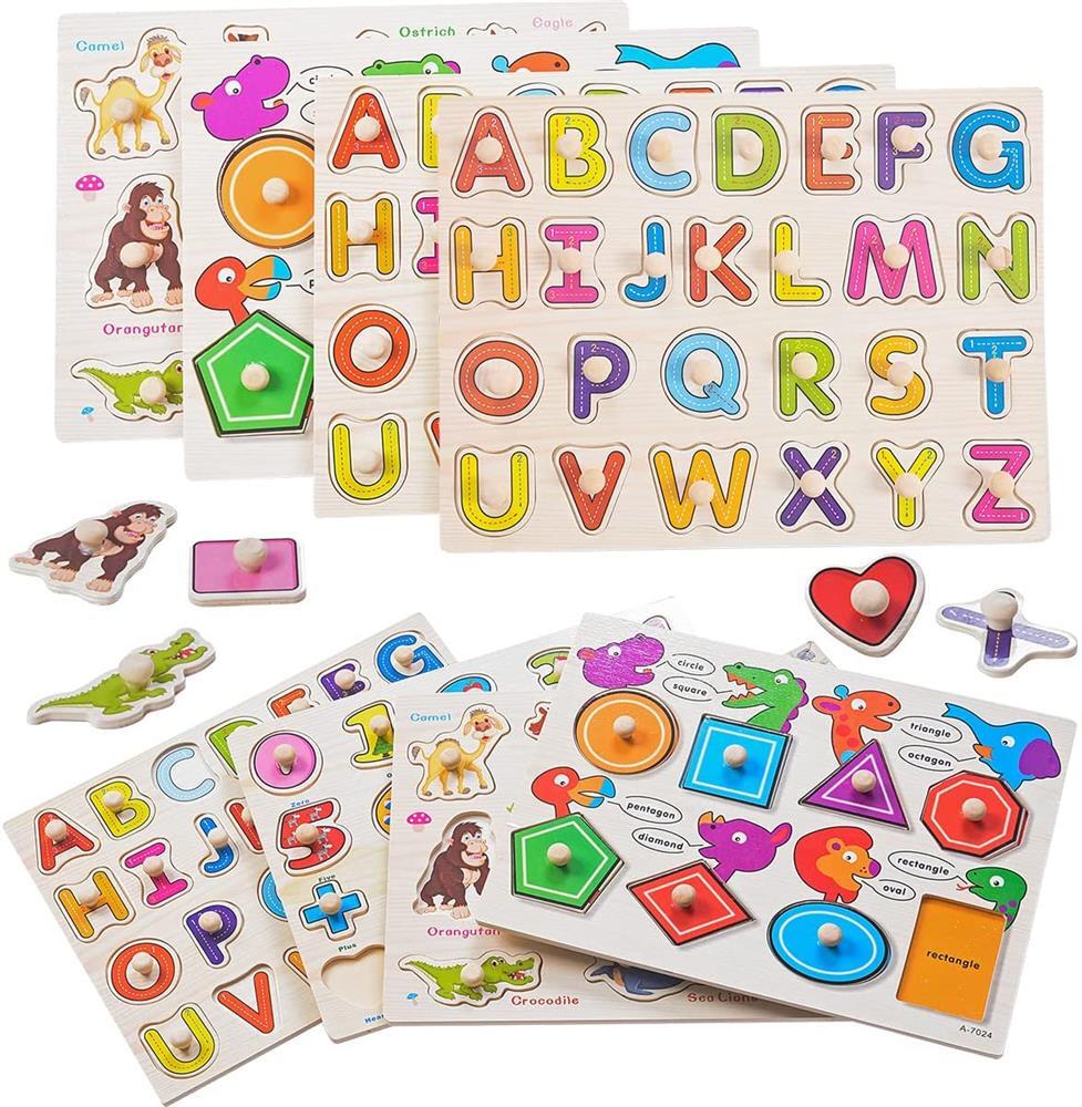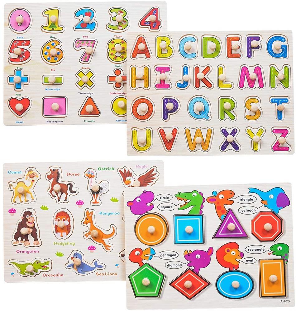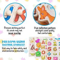 RETURNs Wooden Alphabet ABC, Numbers and Farm Animals Learning Puzzles Board for Kids Preschool Educational Pegged Puzzles Activity from 3 to 4 years
