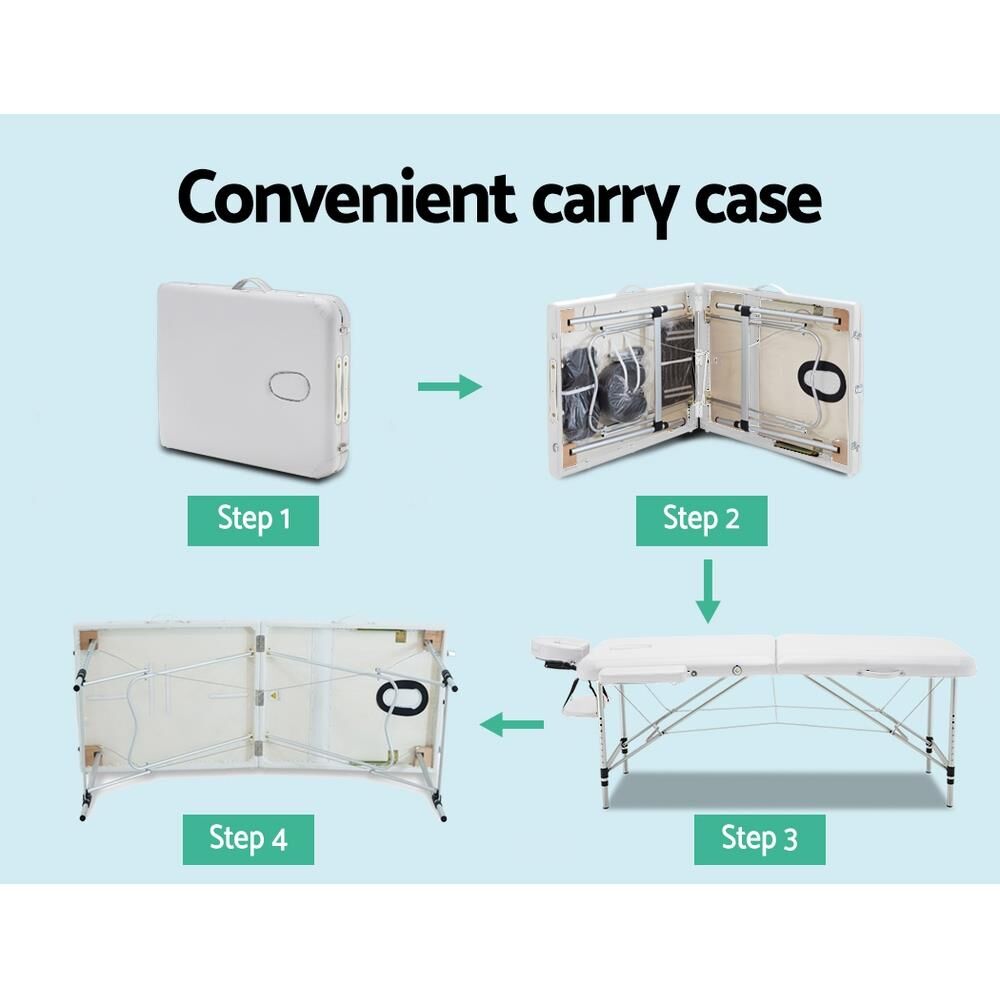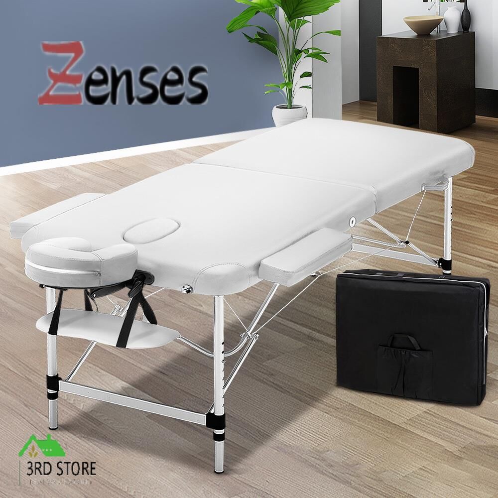 RETURNs Zenses Massage Table 75cm Portable Aluminium 2 Fold White Beauty Therapy