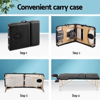 RETURNs Zenses Massage Table Wooden Portable 3 Fold Beauty Therapy Bed Waxing 75CM BLACK
