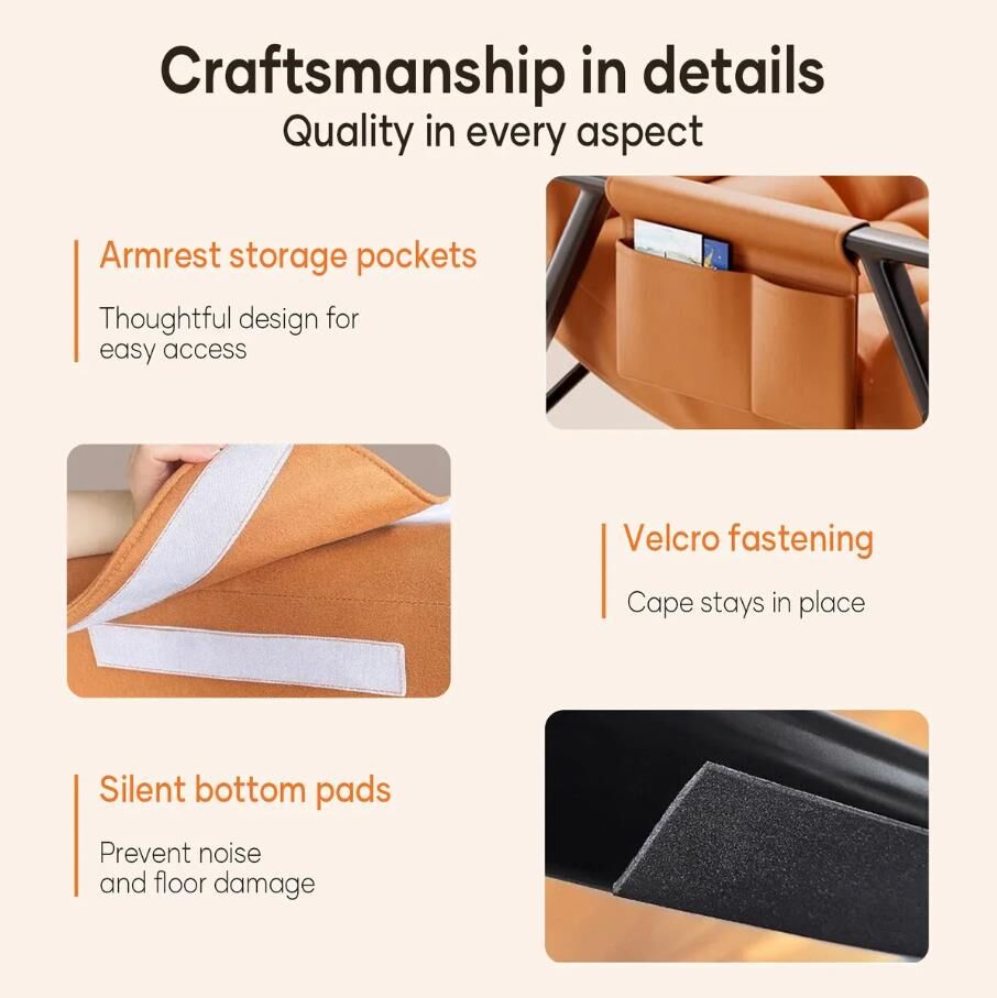 - High-Quality Materials: Constructed from premium tech fabric for comfort and breathability, the chair’s sturdy iron frame ensures stability while reclining.