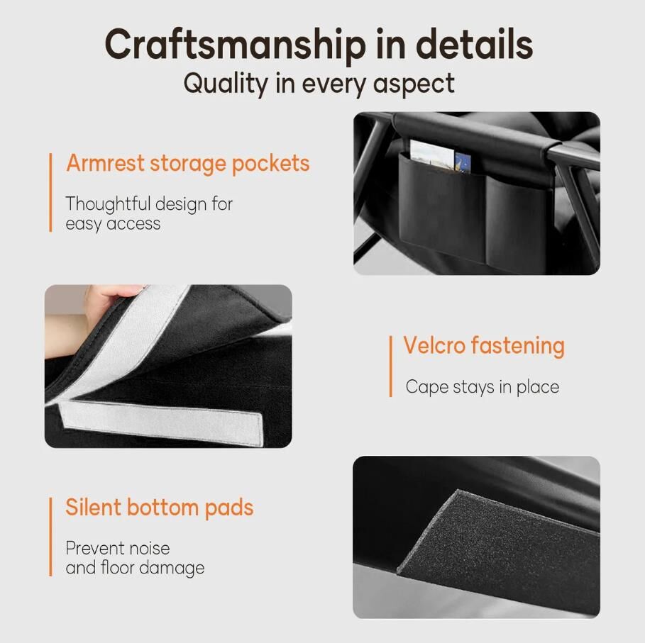 - High-Quality Materials: Made with premium tech fabric for comfort and breathability, the chair's sturdy iron frame ensures stability.