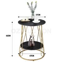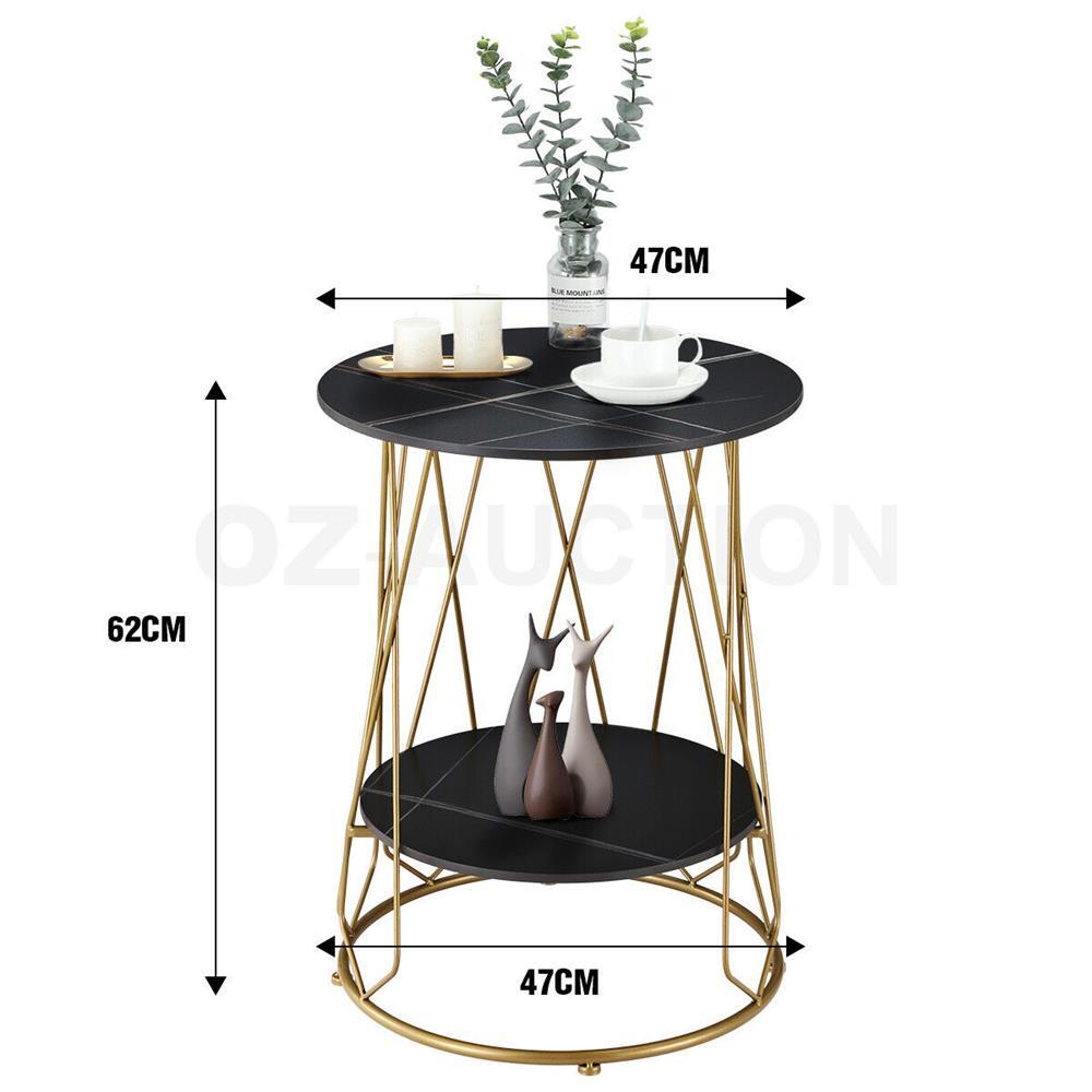 Enjoy a touch of luxury in your home with this black round sofa side table. Featuring a unique modern chic look, this side table will fit any couch or chair in your living room. The sofa end table comprises gold metal support and base and a black marble top, which ensures long-lasting use and creates an elegant setting wherever you use it. A marble top features a size of 47cm x 62cm, which is wide enough to keep your snacks, coffee, magazines on it. Besides, a double-layer design adds more space to meet your storage needs. In addition to a sofa side table, this handy small table can be used as a corner table or coffee table in the living room, a nightstand in the bedroom, and even a plant stand on the balcony.