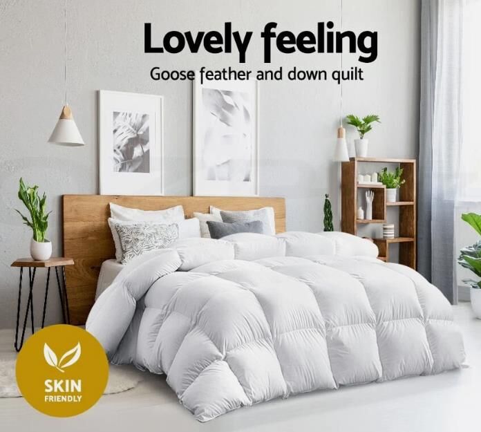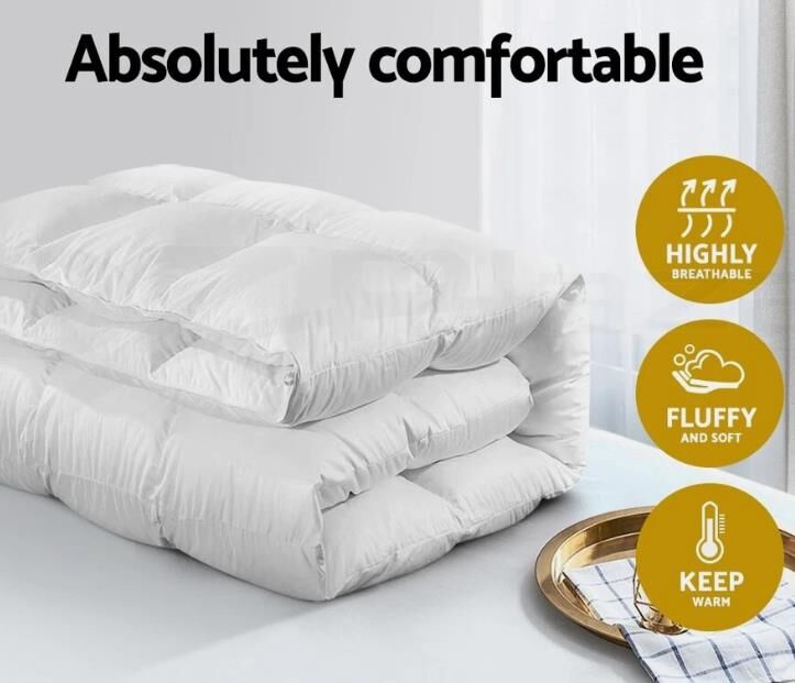 Sleep in premium comfort with the 500GSM Soft Touch Deluxe Goose Feather and Down Quilt, designed by Royal Comfort!