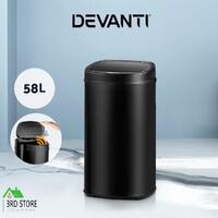 RETURNs Devanti 58L Motion Sensor Bin Rubbish Waste Automatic Trash Kitchen Office Black