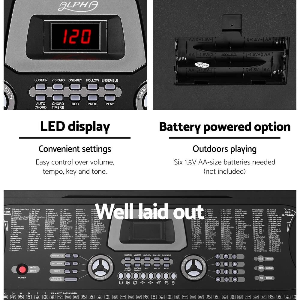 ALPHA 61 Keys LED Electronic Piano Keyboard