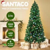 Santaco 2.1m Pencil Slim Christmas Tree Prelit Xmas Decor Led Light 8 Flash Mode