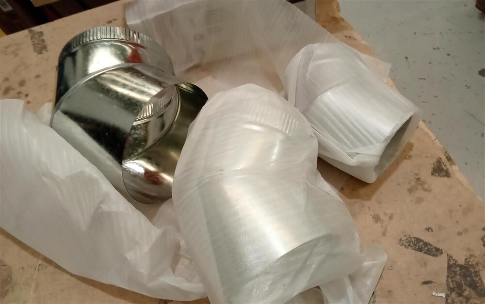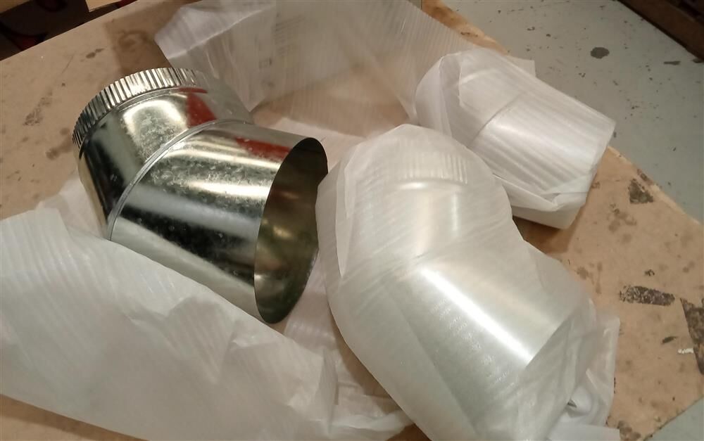 1 x 6” (152mm) stainless steel 45° bend. 1 x 8” (203mm) galvanised steel casing 45° bend. 1 x 10” (254mm) galvanised steel casing 45° bend.