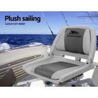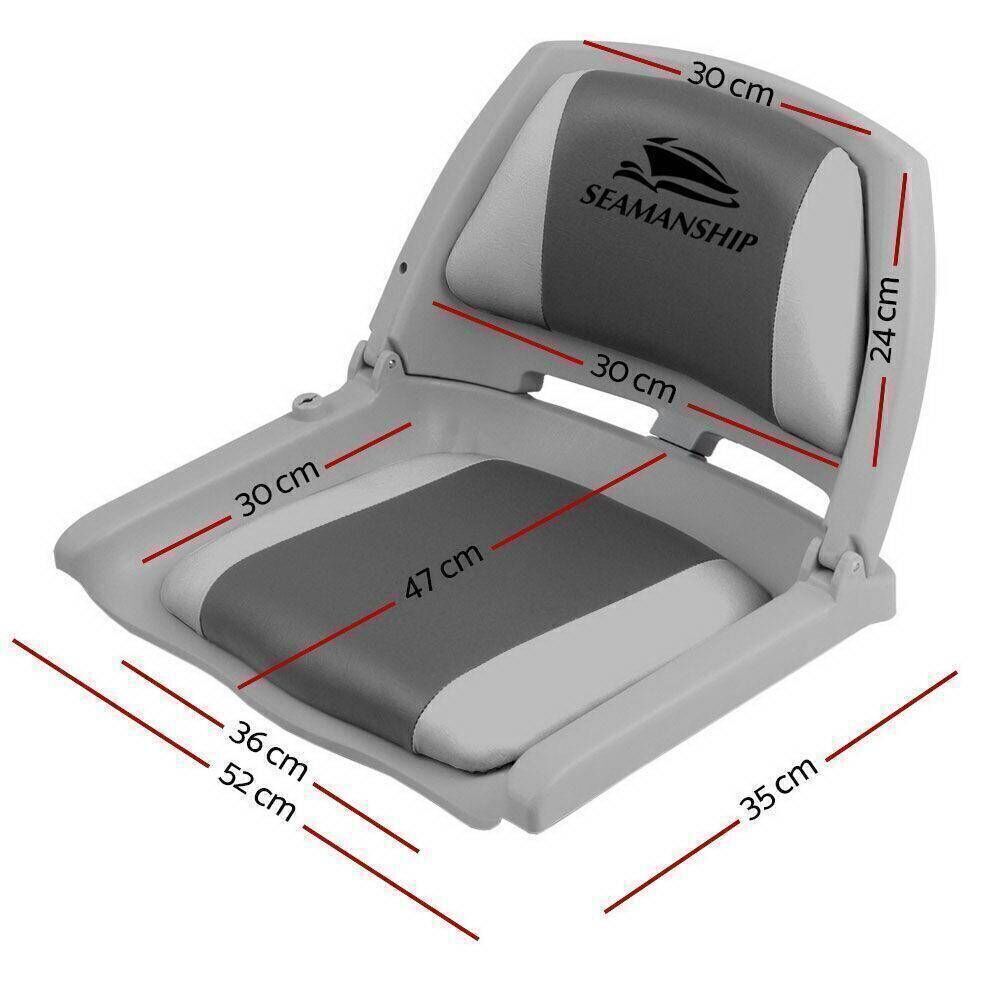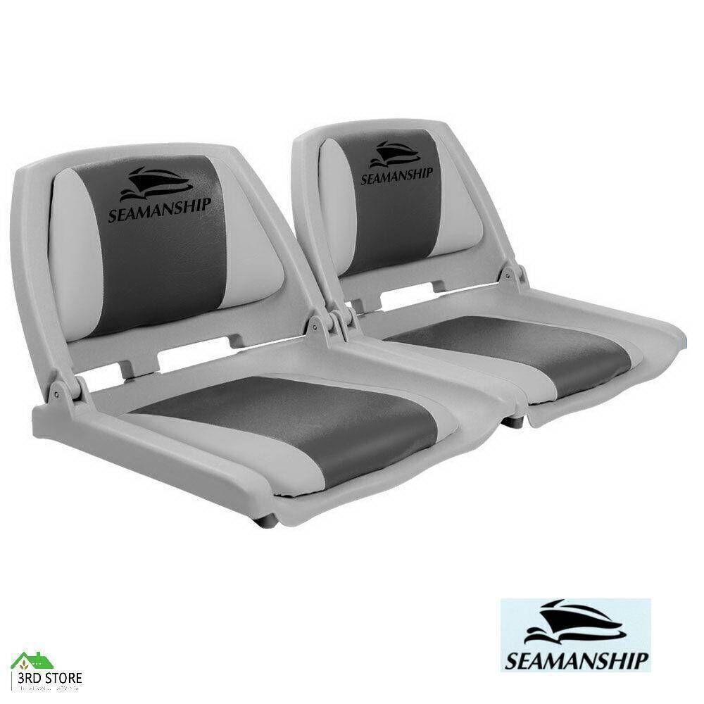 Set of 2 Folding & Swivel Boat Seat Grey & Charcoal Built for all weather conditions the boat seats are made from strong heavy duty moulded plastic and UV resistent PVC.
