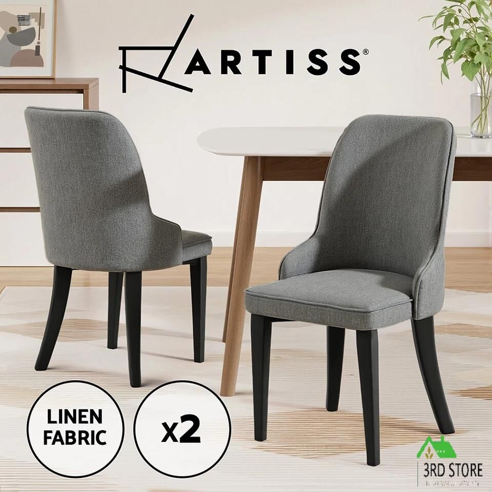 Artiss 2x Dining Chairs Domus Linen Fabric Chair Retro Vintage Steel Legs Grey