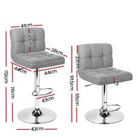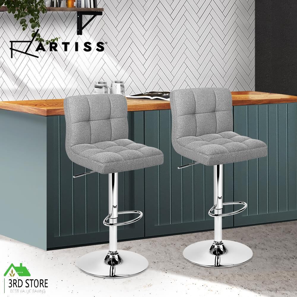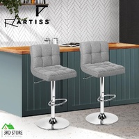 Artiss 2x Fabric Bar Stools NOEL Kitchen Chairs Swivel Bar Stool Gas Lift Grey