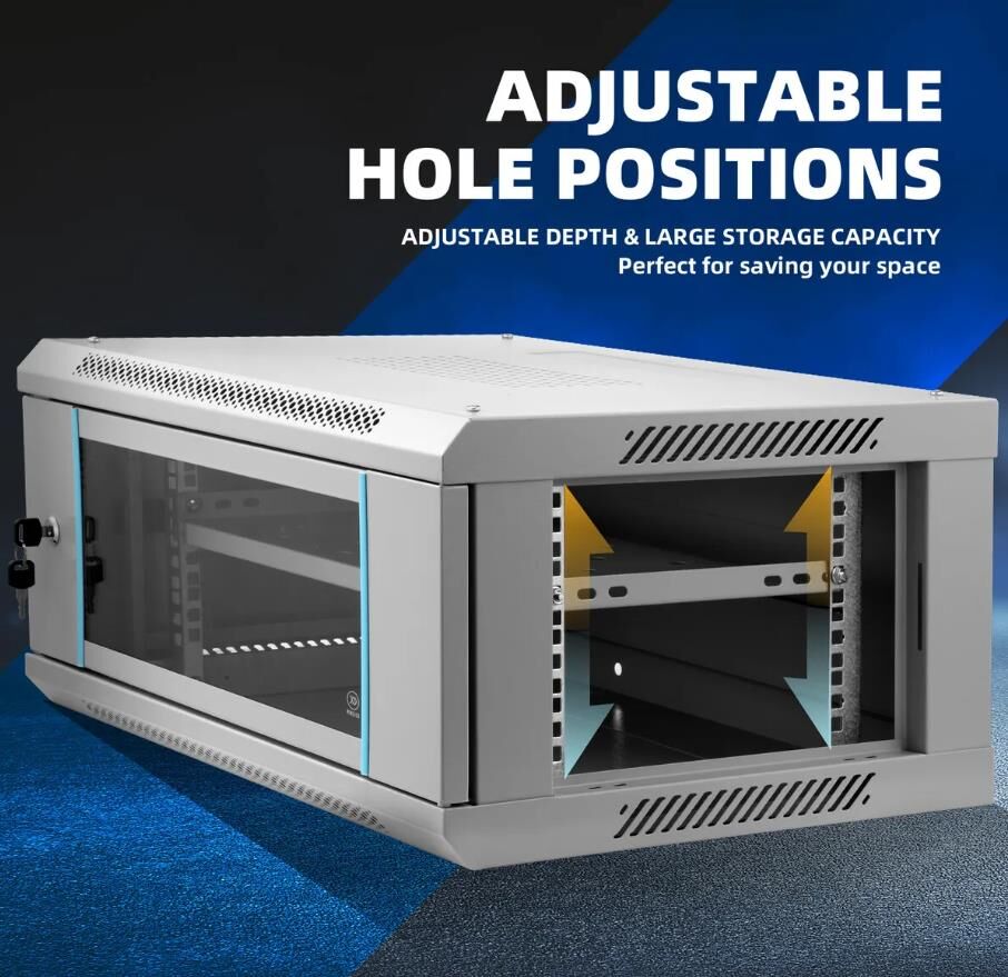 - Easy Installation: The wall-mounted server cabinet features fully adjustable square hole mounting rails for easy installation. Detachable side panels allow for convenient access to the device, and cable management is simplified through top or bottom detachable cover plates. The wiring holes on the top, bottom, and back panels facilitate easy wiring.