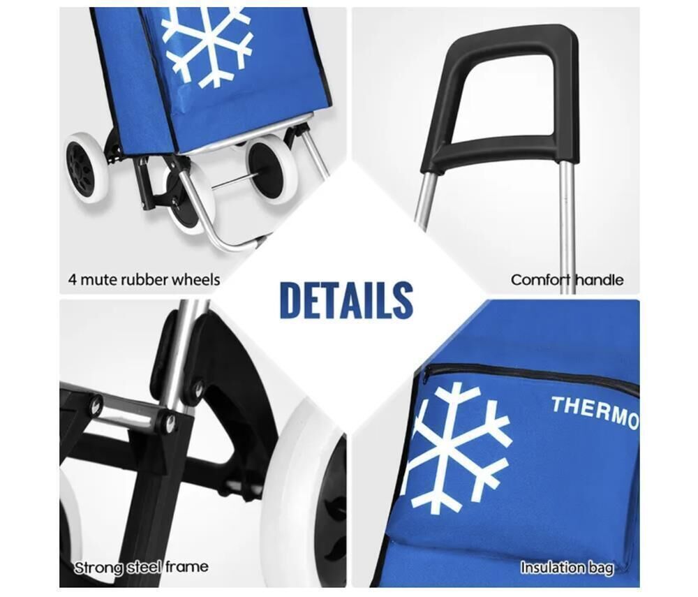Shopping Trolley Cart Foldable Grocery Bag Portable Market Luggage Basket 4 Whee