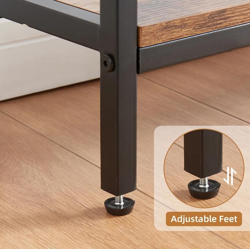 Stable and Durable: Quality particleboard and metal bars are preferred for reliability. Two iron plates are added below the top to form "iron triangle", enhancing the overall stability and ensuring each layer load up to 25kgs