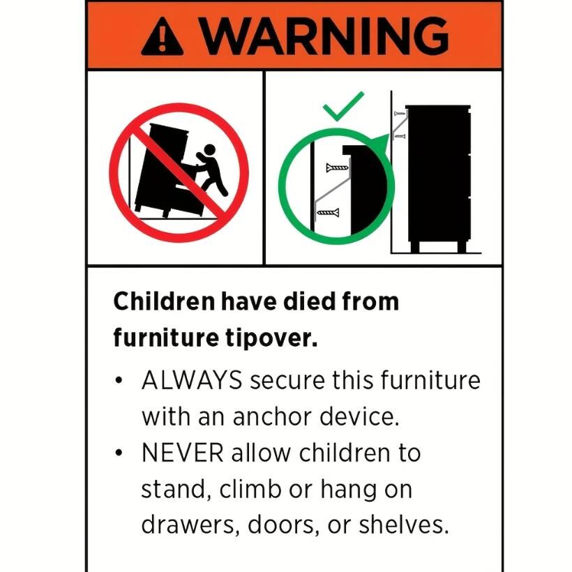 - NEVERallow children to stand, climb or hang on drawers, doors, or shelves.