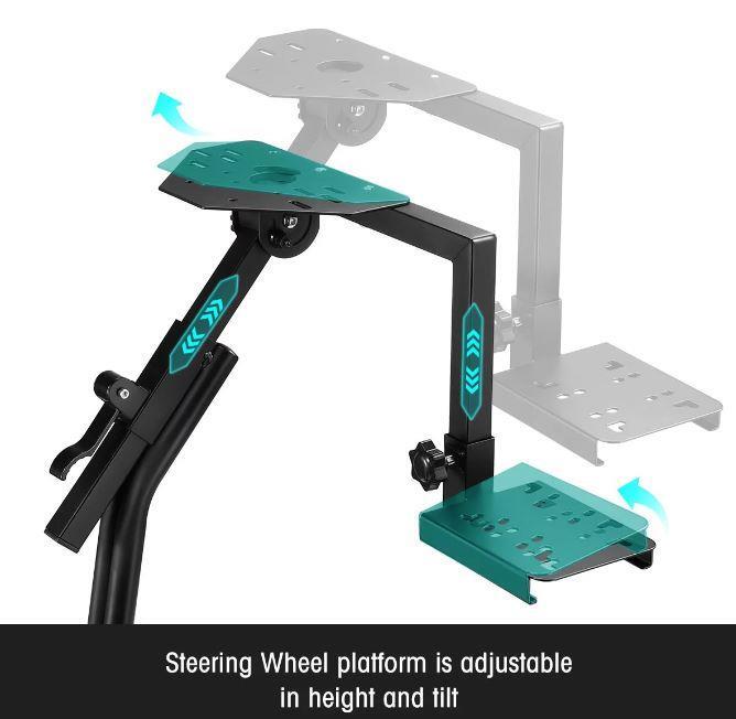 - Height and Angle Adjustable: The steering wheel stand is adjustable in height and tilt. The shifter bracket can be mount on right or left and the pedals are adjustable in angle. Bring the best driving experience to people of different heights.