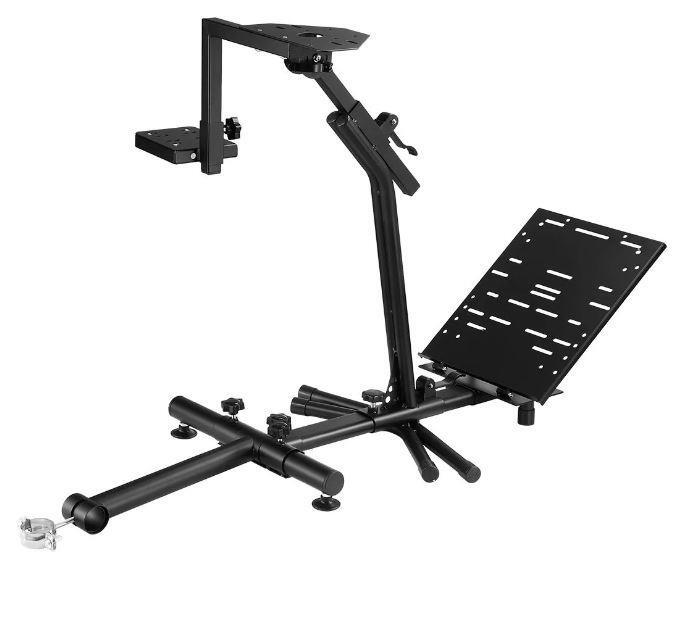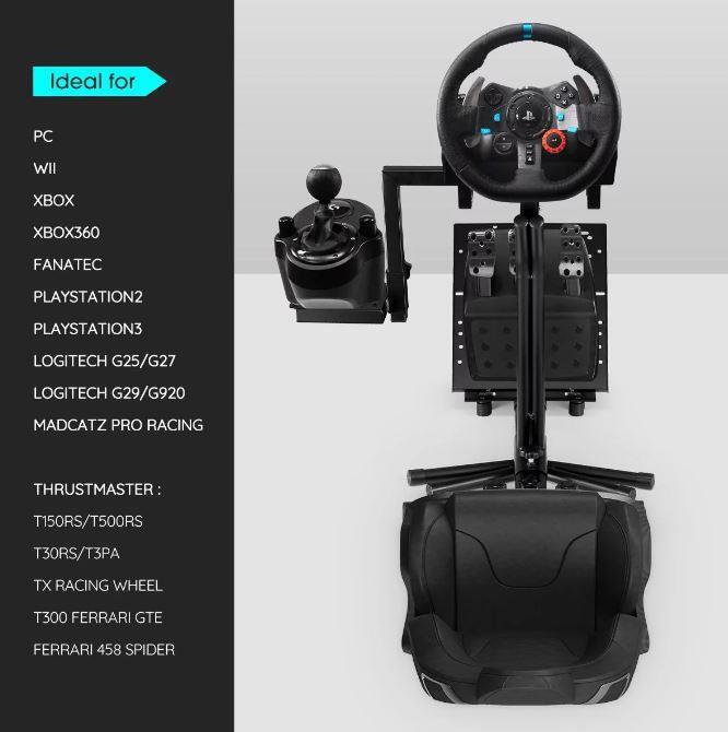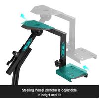 With the main body made of stainless steel and the surface coated with black plastic powder, this racing simulator wheel stand is strong and durable enough to withstand the demands of long-term use. The bottom of huge rubber foot mats grips the ground firmly to provide maximum stability during the games. To give the best driving experience to people of different heights, the gaming wheel stand is adjustable in height and tilt. The shifter bracket can be mounted on right or left, and pedals are adjustable in angle. Plus, the stand comes with extra seat connections to enhance the gaming experience. The stand supports nearly all popular racing wheels including LOGITECH G25/G27/G29/G92, THRUSTMASTER T150RS/T30RS, etc.