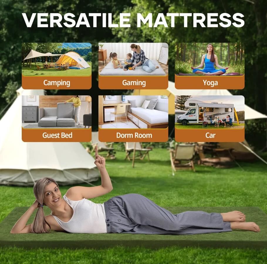 - Outdoor-Ready: Perfect for tent camping, road trips, or as a temporary bed. Easily rolled up for storage and transport with an included carry bag. (Not intended for long-distance hiking.)