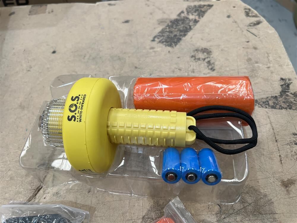 - Flashes US Coast Guard spec SOS and infrared signal, orange distress flag fulfills daytime signal requirement, and quality marine whistle complies with USCG audible signal requirements; Made in USA