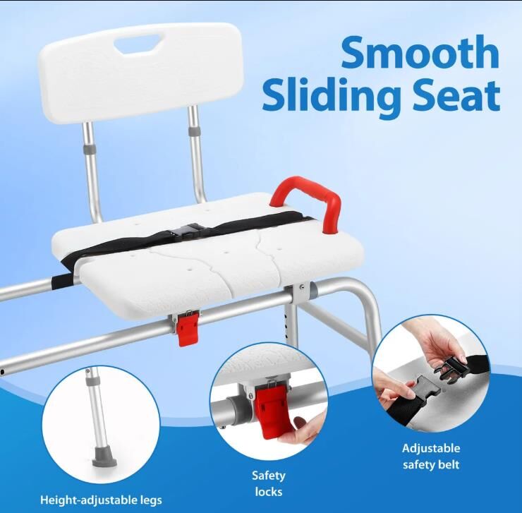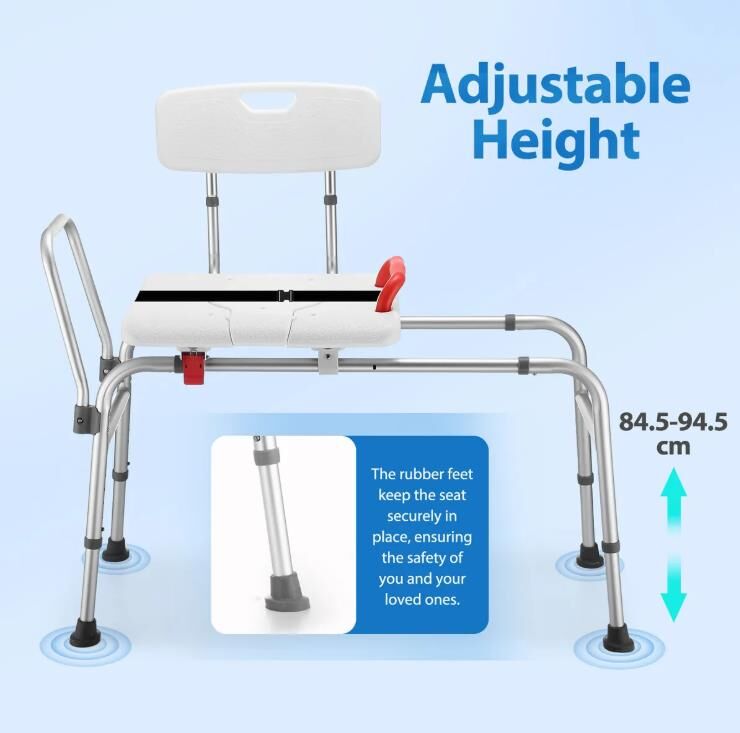 - Easy Transfer: Sliding design eases wheelchair/walker transfers to bath/shower, reducing strain. Adjustable height for ideal accessibility.
