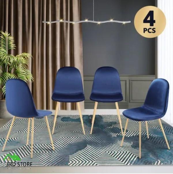 Add a stunning effect to any household dining area with these modern gorgeous kitchen chairs. The dining chair set is packed with 4 pieces and comes in a blue colour. Upholstered in soft velvet fabric and high-density sponge, the ergonomic chairs provide you with smooth touch and comfortable sitting experience. For enhanced stability and a long lifespan, the dining room chairs fit sturdy metal legs which are sealed with rubber foot protectors. Outfit your dining table and transform your kitchen space with this velvet chair set.