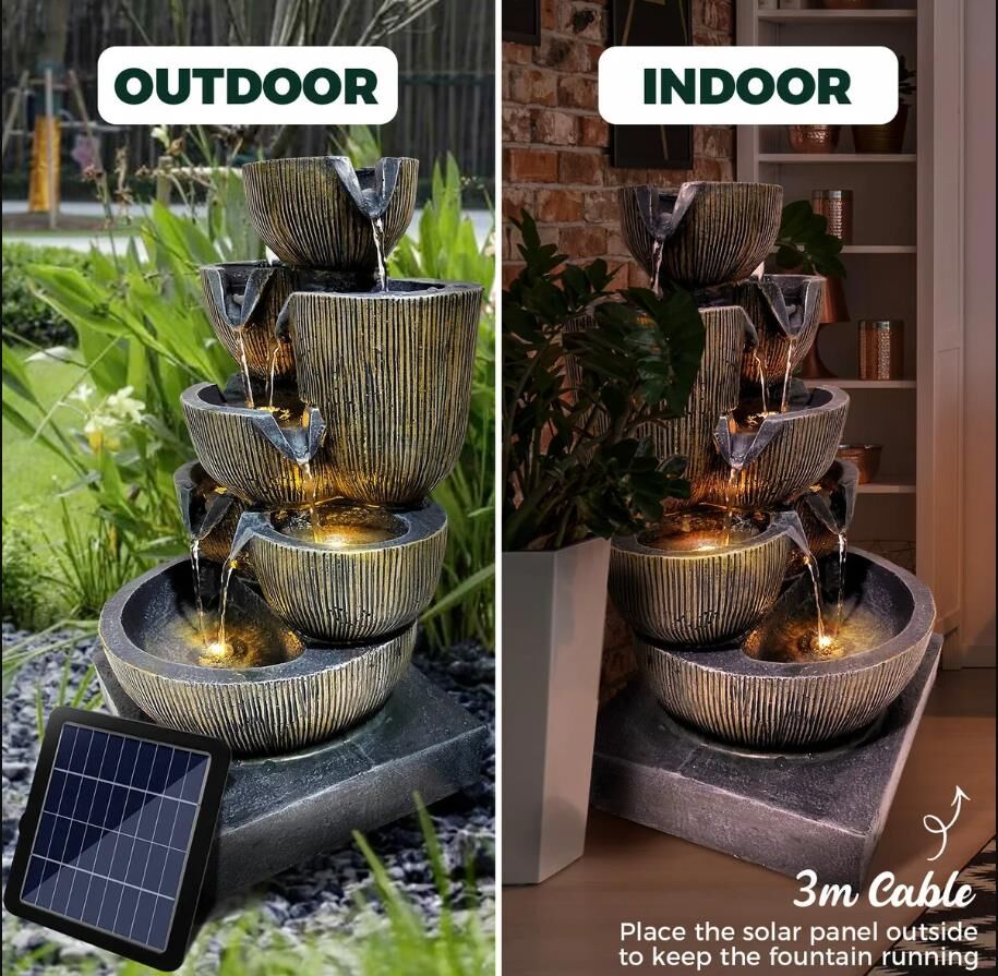 - Elegant Five-Tier Cascades: An elegant five-tier design creates a serene, multi-level water flow for a truly tranquil ambience.