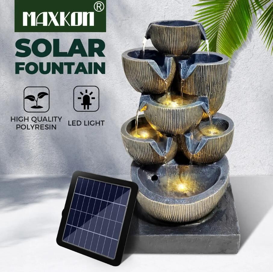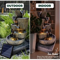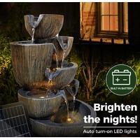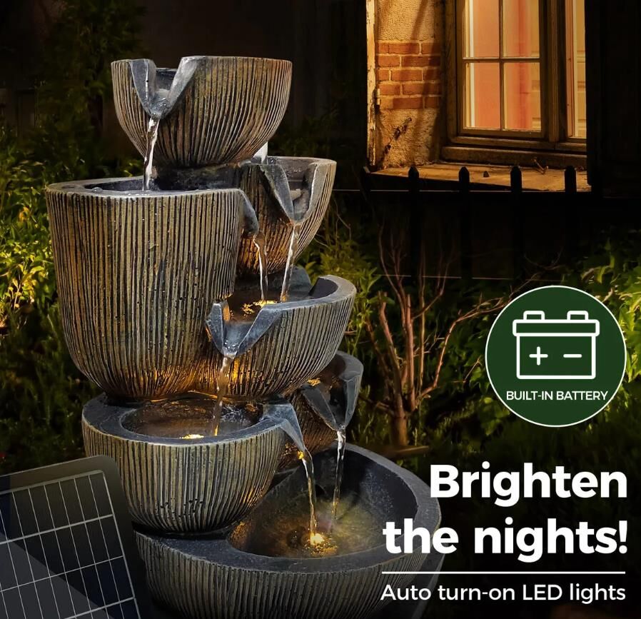This solar powered water fountain offers the best choice if you are in pursuit of an artistic garden or home. It features a 5-tier bird bath with water cascading down all the way and the elegant, classic polyresin structure composes an eye-catching masterpiece for gardens. This water feature highlights a solar-powered running system, coming with a weatherproof solar panel and rechargeable battery. The free and eco-friendly solar energy will save you a lot of money from electricity bills. Better still, the water flow rate can go up to 300 Litres per hour. Equipped with LED lights, the solar fountain adds attraction to your garden not only in the daytime but also during the night. Take this water feature home to decorate your garden right now.