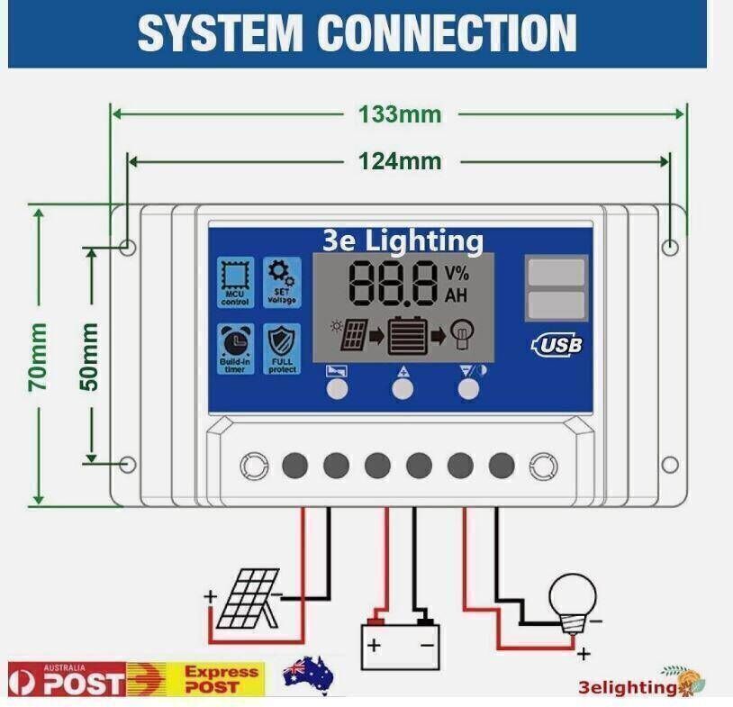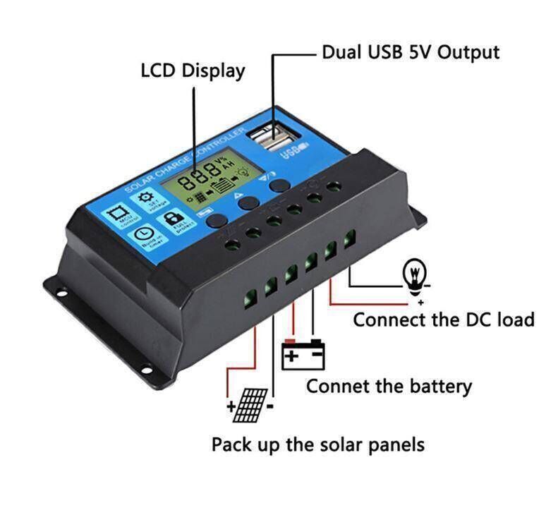 Solar Panel Charge Controller Regulator 12V/24V auto dual USB 20A Battery PWM AU