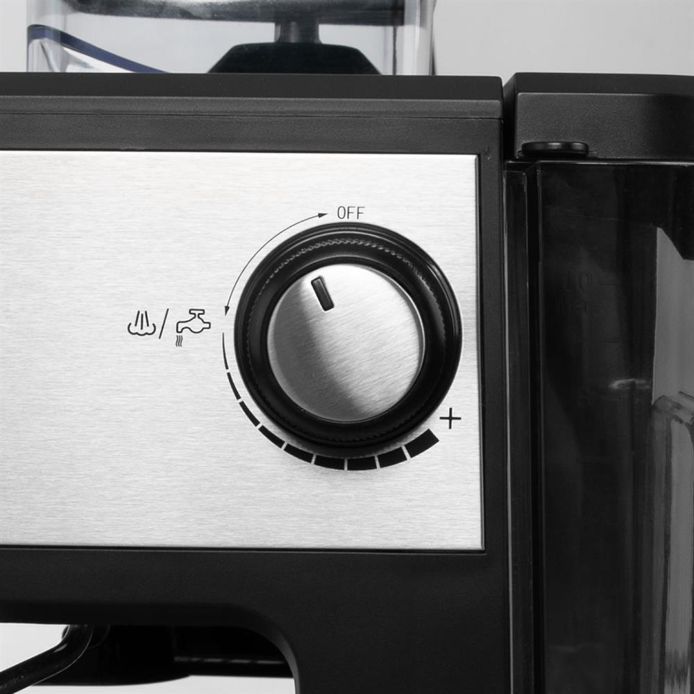 - Removable stainless steel drip tray and 360° adjustable steam wand