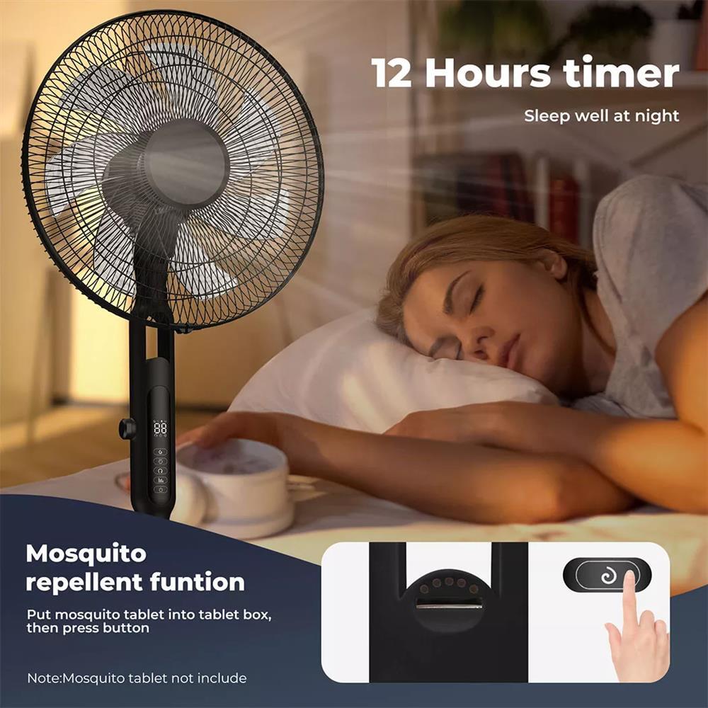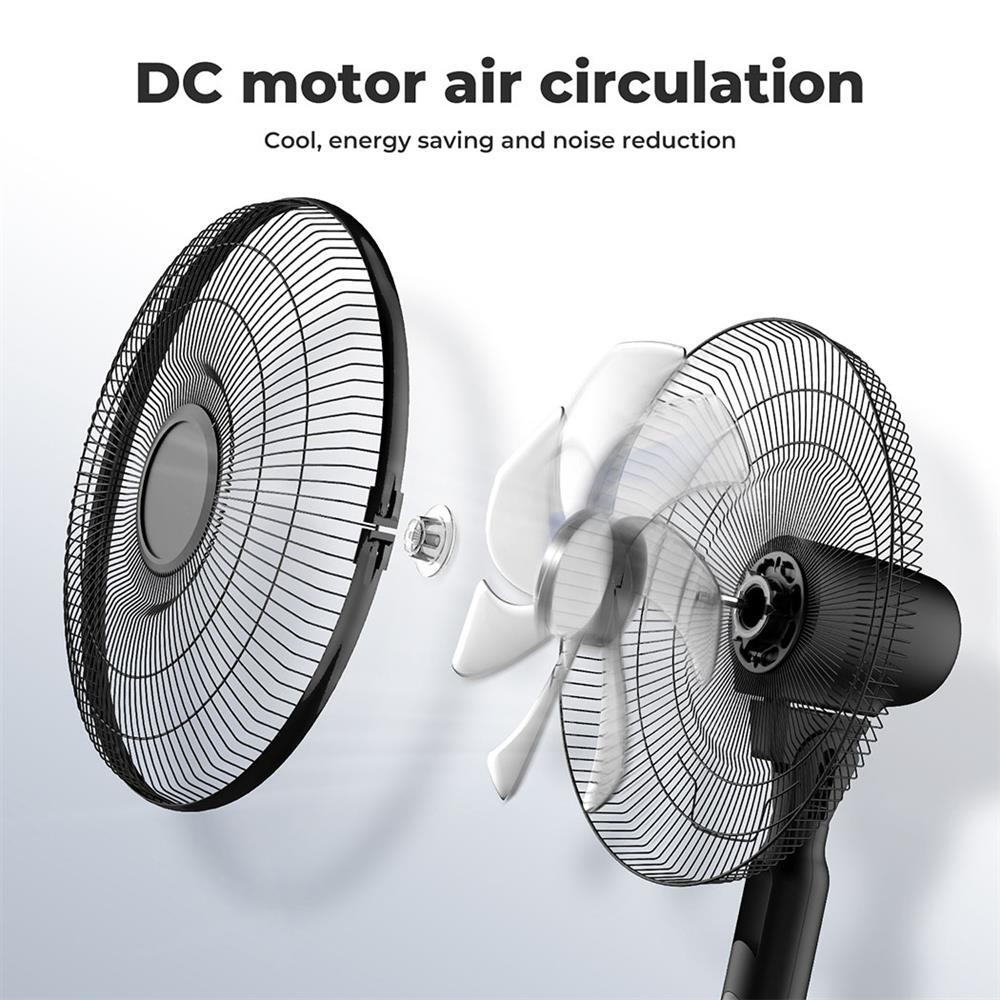 Stay cool this summer with our advanced floor fan featuring a powerful 7-blade design and a brushless DC motor that ensures smooth and efficient airflow. With 28 variable speed settings you can easily customise the breeze to your preference from a gentle wind to a strong gust. The fan's sleek touch screen and convenient remote control make operation effortless allowing you to adjust settings from anywhere in the room. Its oscillation feature enhances air circulation working in harmony with your air conditioner to speed up the flow of cool air and improve room temperature more quickly. The fan also offers versatile wind modes to suit different scenarios and includes a mosquito repellent slot and timer function to ensure a peaceful pest-free environment and uninterrupted comfort. Ideal for any space this fan not only provides effective cooling but also boosts the performance of your air conditioner making it a perfect addition to your summer cooling solutions.