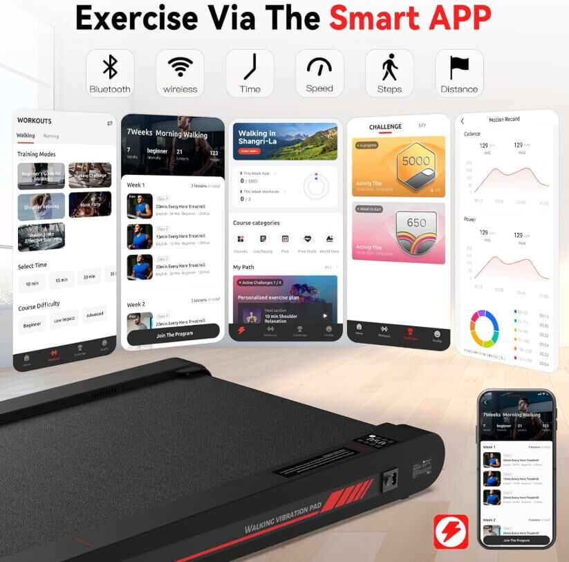Sperax 3 in 1 Walking Vibration Pad, Under Desk Treadmill with APP, Portable Tre