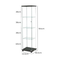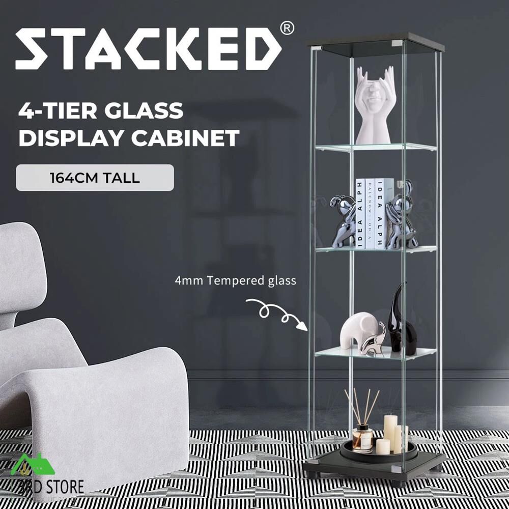 Stacked Display Storage Cabinet Glass Lockable 164cm with 4 Tier Shelves Floor