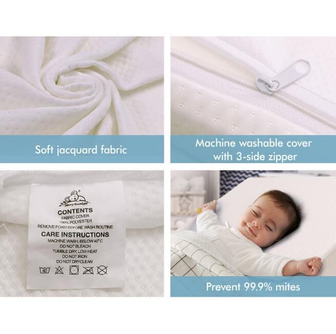 This wedge pillow features a layer of supreme gel memory foam made of deluxe PU silicone gel on top of the elastic base foam, and it selects the best memory foam density on the market (60kg/m3). It comes with a removable and machine-washable cover. The OEKO-TEX-certified jacquard fabric is antibacterial and anti-mite, providing a fresh, clean experience in every use.