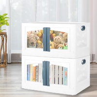 Storage Containers Lid Stackable 85L Foldable Organiser Boxes Toy Clothes Clear